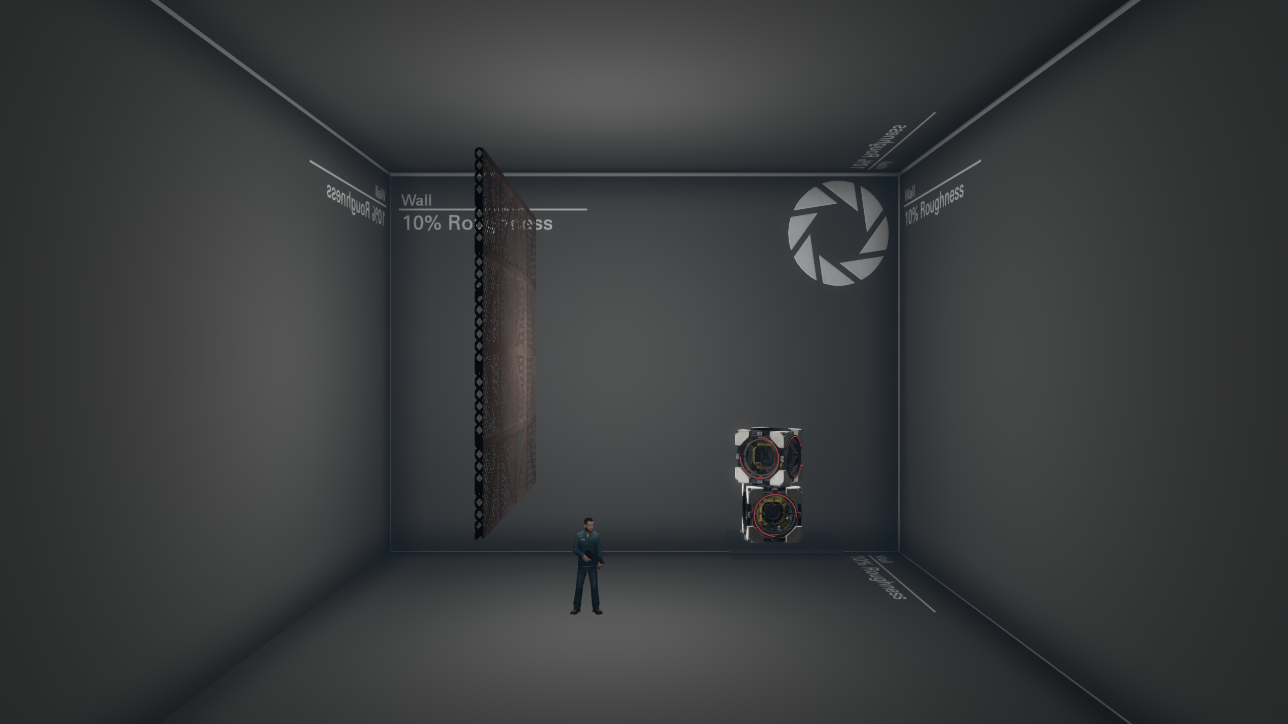 The addition of specular lighting also make metallic PBR materials look much more correct. Previously, without another specular-enabled source like outdoors CSM, metallic materials would simply appear black. This is because metals really only reflect specular lighting, and have little to no diffuse lighting.